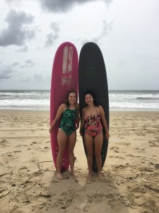 Becca and I ready to surf!